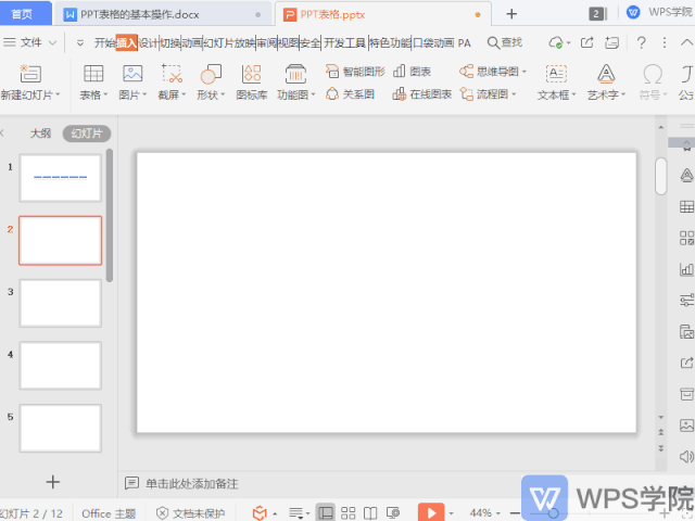 比如插入表格不必在表格和 PPT 之间来回复制粘贴,只需使用「插入表格」功能,输入行列数值,就能插入我们需要的表格。