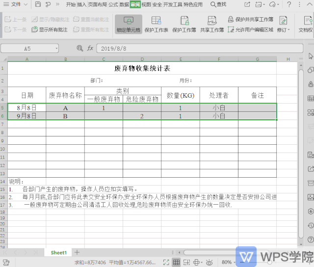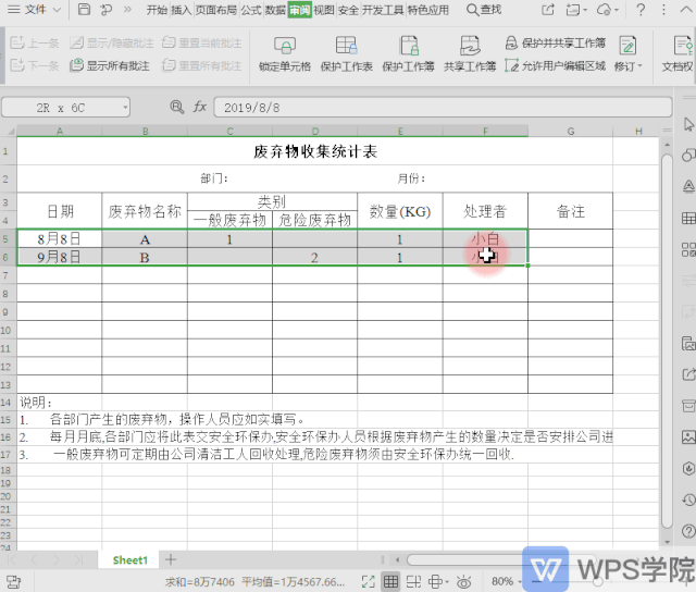 锁定之后,点击「保护工作表」设置更改的密码以及允许操作的范围,就会发现被保护的区域已经无法被选中编辑了,这样也就完成了对工作表的保护。