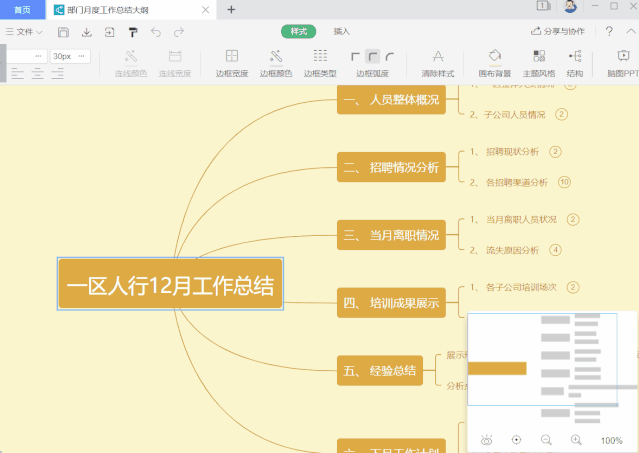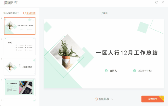 做 PPT 很花时间?这 2 个超省时的技巧,帮你轻松搞定 2021-03-30 4.1千人已阅读 每次制作 PPT,光是列大纲就要花上不少时间。更让人头大的是,大纲写完了,还要把内容重新输入到 PPT 中。过程稍显麻烦。今天,WPS 君给大家带来了 2 个好用的技巧:既能让你快速列大纲,也可一键让大纲自动转 PPT。01列大纲的「大杀器」也是日常整理思路的好助手列大纲的好处,是能让创作的内容始终围绕着中心点展开,不容易偏题,明确想表达的重点。基于这样的特点,能够聚焦某个中心话题、逐步向外发散思路的「思维导图」逐渐盛行。再复杂的内容,只要通过「思维导图」逻辑抽丝剥茧,就能明确解释清楚,让人一目了然。比如说工作总结报告:目前,WPS 电脑版、手机版均可免费使用思维导图功能。仅需在新建时选择脑图、思维导图即可开始厘清思路。快速且轻松地将复杂模糊的文字、想法转换成一张清晰直白的脑状图。相信这样列大纲的方式,不仅能锻炼你个人的抽象思维能力,还可降低许多潜在的沟通成本(思路让人一目了然)。 WPS 电脑版操作入口:02列好大纲后思维导图一键转为 PPT在以往,可能画好思维导图、需要制作 PPT 时,你还需将前者的结构和内容逐个复制粘贴到后者中。一件事做两遍,效率当然很低。这也恰恰是很多人不用思维导图列大纲的「致命」原因。但作为大家贴心的办公助手,WPS 全新的「脑图PPT」功能,可以帮你一键将思维导图转换为 PPT。(仅支持电脑版)转换的整个过程中,不需要跳转到其它界面,仅需在 WPS 思维导图界面中点击右上角的「脑图PPT」按键,即可自动完成转换:如果你对转换的 PPT 不满意,请别着急!脑图PPT 还有两大实用功能:❶ 更换风格当生成的 PPT 风格不满意时,点击左上角的「更换风格」即可提供多款精美的全局模板,喜欢哪种点应用就完事了,So easy~❷ 智能排版倘若你对现成的风格模板不满意,也不必担心!点击界面底部的「智能排版」,WPS 将会通过 AI 技术自动提供更多适合的模板,点击使用即可。怎么样,这样「列大纲、制作PPT」方便吧?后续 PPT 的内容,你甚至完全可以直接在 WPS 的思维导图里完成。哪怕思维导图内容修改也不怕,PPT 导出也只是一个按键的功夫!好了,这次实用技巧分享就到这里啦!如果想要学习更多办公知识,欢迎扫描下方二维码关注我们哦~ 推荐阅读 3 5 提示 网络原因,加载失败,请关闭重试。 复制链接,电脑端分享 复制链接 打开手机微信 扫描二维码一键分享好友 此内容对你有帮助吗? 有帮助 无帮助 * 无帮助的原因 描述不清 根据教程操作后未解决 这功能不好用 以上都不是 请完成必选 (选填) 请问还有其他建议吗? 无建议提交