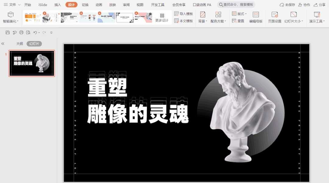 而 WPS 提供一些内置的配色方案,让我们在配色上可以轻松使用,比如说下面这页 PPT ,使用的纯黑背景看着好像还行: