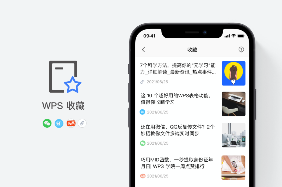 而WPS手机版「收藏」功能,支持将微信、知乎、今日头条甚至是浏览器看到的内容收藏在一起,实现跨App的收藏!