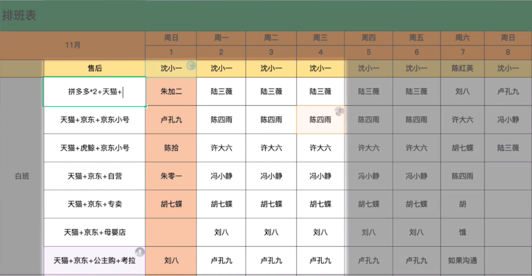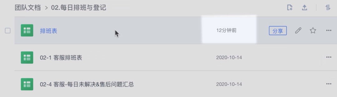 现在我们用在线文档制定规范表头,进行实时在线协作和排班管理。客服同事A只需要给交接班同事B发一个金山文档链接,同事B就可以快速回顾A当天的服务进度,无缝对接。文档编辑后的保存,告别传统繁琐方式,可直接线上随时随地进行查看编辑。如果有修改则自动更新保存,解救强迫症的“ctrl + s”。