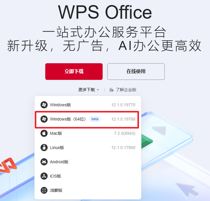 4.如不正常,更换64版本WPS后打印。64位版本下载地址:http://www.wps.cn