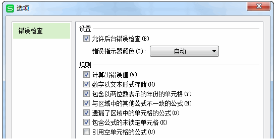 - 错误检查选项可以对标记颜色和规则进行设置。