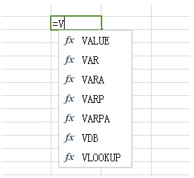 - 在创建函数公式时,只需要在单元格输入“=”加上函数首字母,程序会自动出现函数的提示列表,如下图所示:
