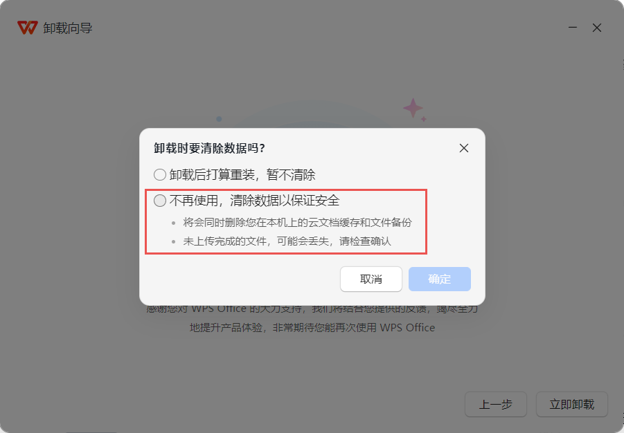 卸载时选择清除数据