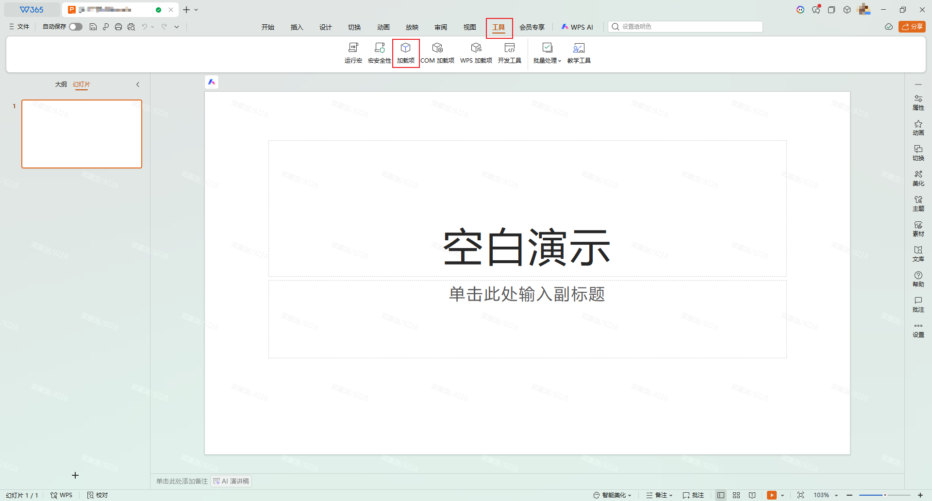 1.打开 WPS 演示任意空白演示文稿;