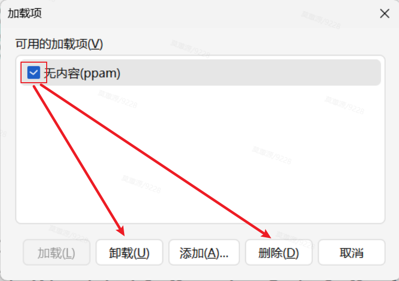 4.在加载项管理弹窗中,选中导致崩溃的第三方加载项,点击弹窗中的「卸载」或「删除」按钮;