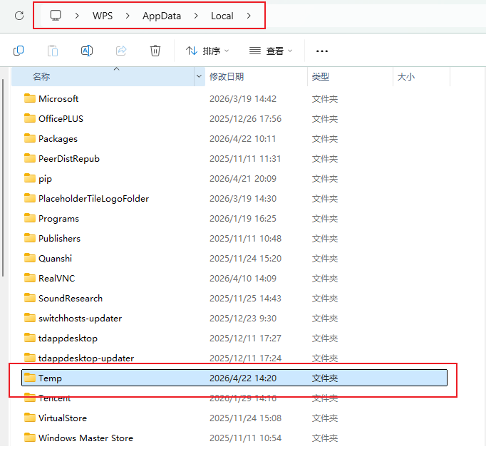 找到 Temp 文件夹所在位置