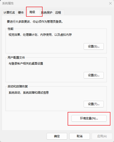 步骤 1:打开环境变量设置